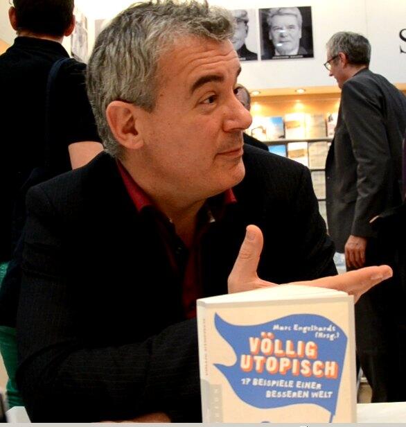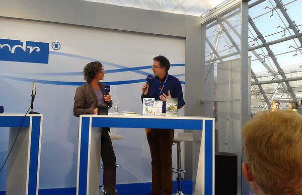 Voll war es auch vor der Bühne des MDR, wo ich mit Carsten Tesch über „Völlig utopisch“ sprechen durfte (live übertragen bei MDR Figaro). Besonders gefallen hat mir sein Kommentar, dass die Weltreporter (unser globales Netzwerk freier Korrespondenten) selbst eine wahrgewordene Utopie sind. Da hat er Recht, und so hatte ich das noch nie gesehen. Aber dass 16 freie Korrespondenten zwischen Neuseeland, Kalifornien und Südafrika sich so sehr von den Utopien anderer begeistern lassen, hat natürlich einen Grund. Auch Deutschlandradio Kultur und die Kulturwelle SR2 haben mit mir über unsere Utopien gesprochen.
