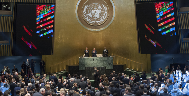Die UN-Generalversammlung nimmt einstimmig die UN-Nachhaltigkeitsziele an (Photo ©UN Photo/ Cia Pak)